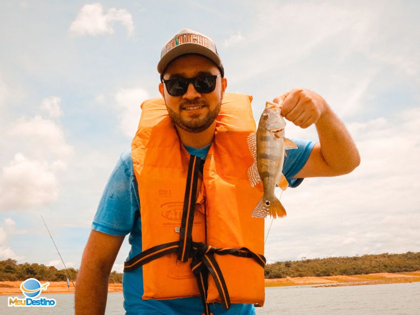 Eu comecei bem a parte dos arremessos, com a ótima explicação do Alexandre fiz uma boa execução. Após aprender a arremessar, é hora da pesca embarcada, seguimos pela represa em um barco de alumínio até um ponto considerado ideal para a pescaria. A pesca esportiva é na modalidade “pesque e solte”, depois de diversos arremessos e muitas dicas do Alexandre, consegui pescar um tucunaré.