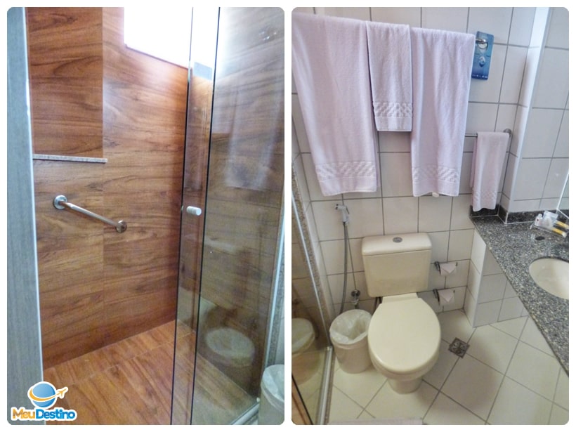 O banheiro possui ducha com aquecimento solar, secador de cabelos, espelho grande e kit amenities Gérbera. A internet Wifi funcionou muito bem no apartamento. A acomodação é aberta através de cartão, entregue no momento do check-in. Os apartamentos possuem varanda.