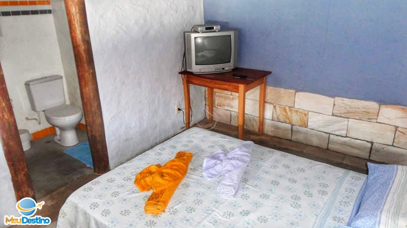 A pousada é pequena, possui apenas 12 quartos e a vantagem é o silêncio e o sossego no local. Os 12 apartamentos da pousada tem 16m², todos com uma cama de casal e uma de solteiro, banheiro privativo, isolamento térmico, ventilador, TV com parabólica e internet Wi Fi.