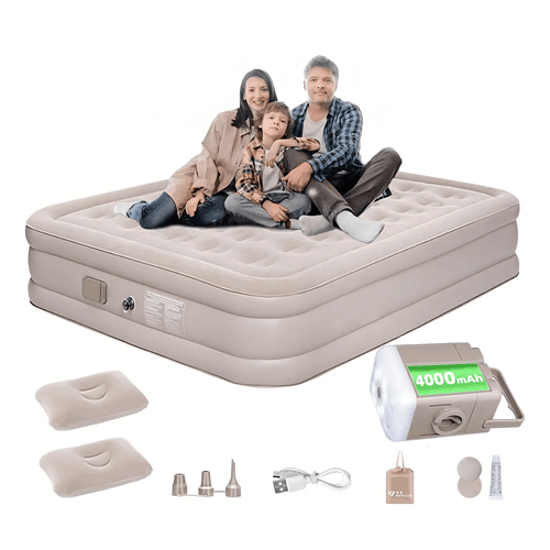 Prático demais em viagens. Tem bomba elétrica que enche e esvazia o colchão em 5 minutos e material resisitente.