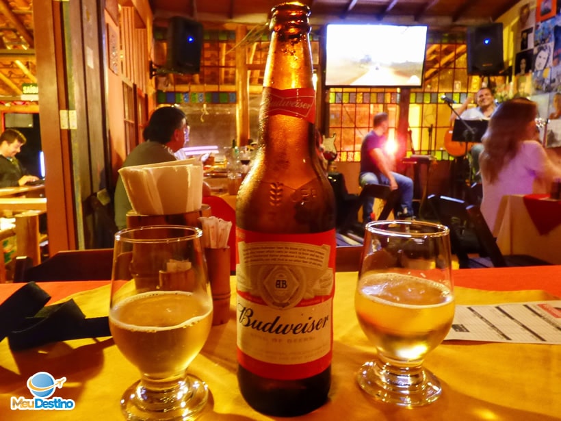 Para relaxar depois de um dia super cansativo, tomei Budweiser (R$9) que estava bem gelada! A Kaká tomou suco natural de Laranja (R$5) feito na hora. A casa conta com uma adega de vinhos.